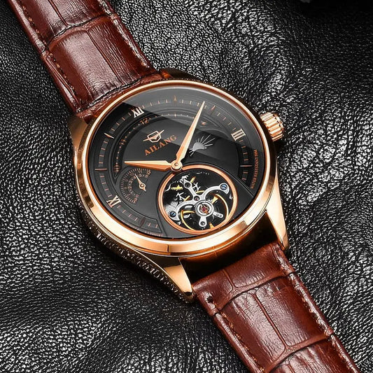 Automatic Mechanical Watches Mens Watches Top Brand Luxury Sapphire Genuine Leather Original Tourbillon Hollow Movement