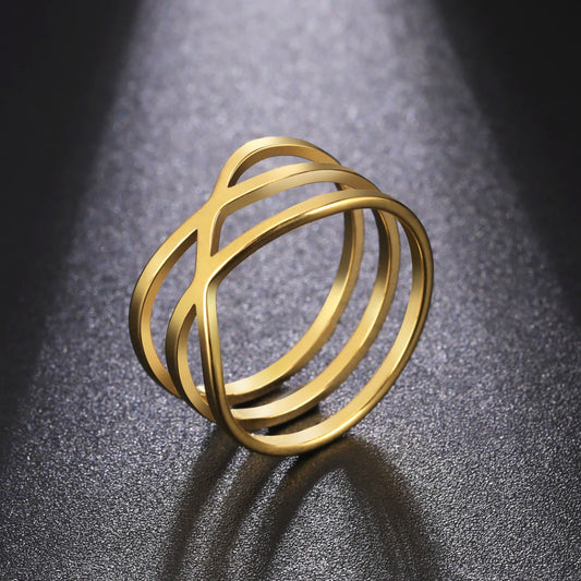 Simple Line Cross Rings Women Men Stainless Steel Minimalist Geometric Finger Ring Trend Jewelry Party Gifts Wholesale