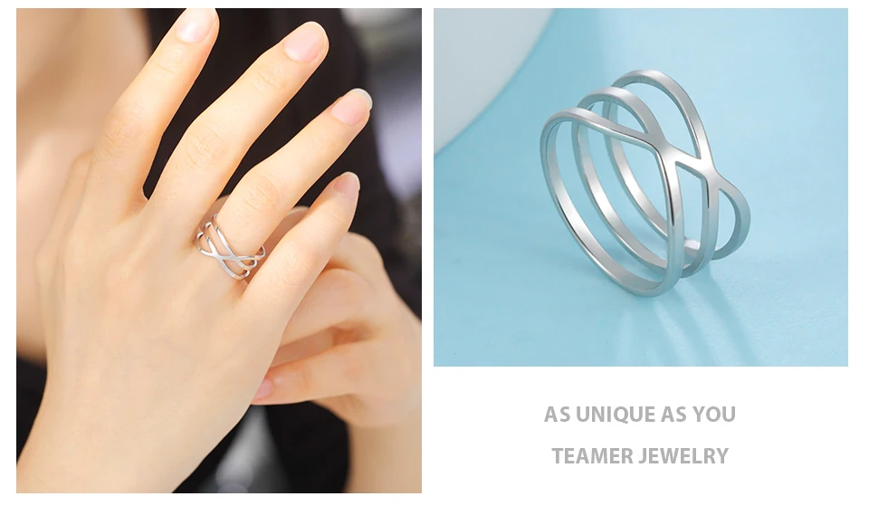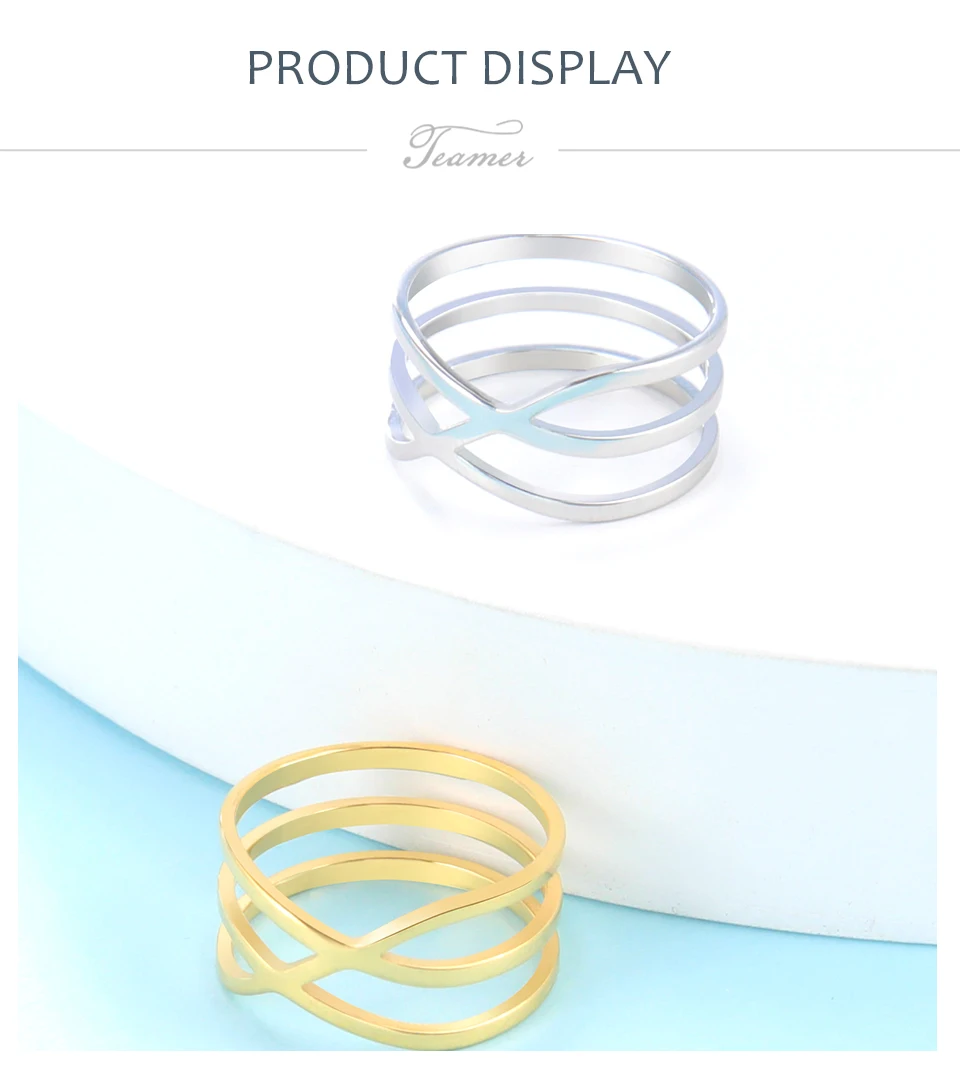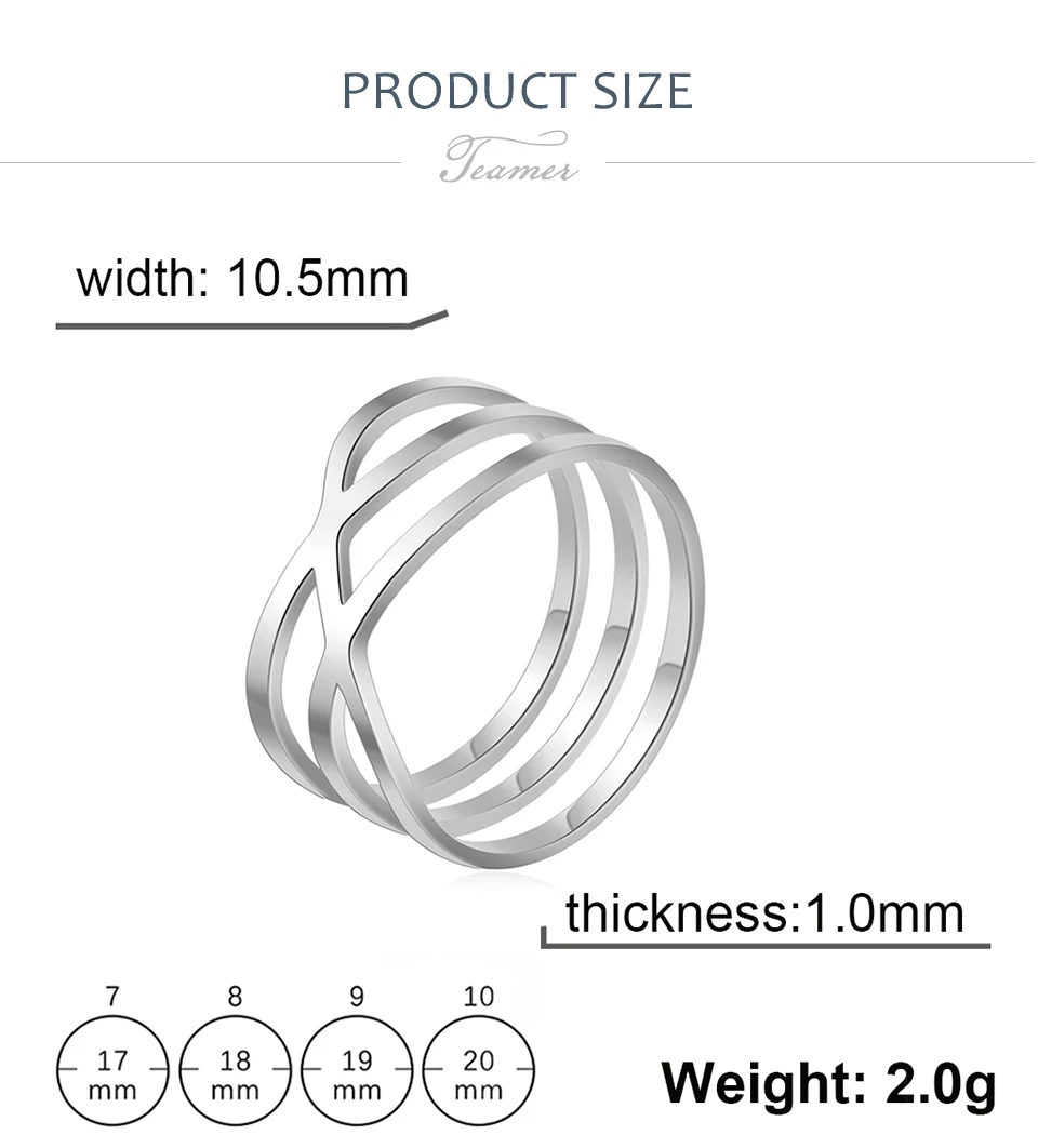 Teamer Simple Line Cross Rings Women Men Stainless Steel Minimalist Geometric Finger Ring Trend Jewelry Party Gifts wholesaleSpecification: